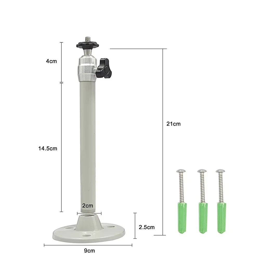 Tento univerzální kovový stativ o výšce 21 cm je praktickým řešením pro stabilní instalaci projektoru nebo kamery v domácnosti, kanceláři či menší přednáškové místnosti. Konstrukce je pevná a zajišťuje dlouhou životnost díky robustní kovové trubce o průměru 2 cm. Stativ je vybaven otočnou hlavou s možností rotace 360°, díky čemuž lze zařízení nastavit přesně do požadovaného úhlu. Montážní základna o průměru 9 cm se čtyřmi otvory umožňuje bezpečné připevnění ke stěně nebo ke stropu. Součástí je i sada šroubů a hmoždinek pro jednoduché a rychlé upevnění bez nutnosti dokupování dalšího příslušenství. Stativ má nosnost do 1 kg, což jej činí ideální volbou pro menší projektory, miniprojektory i lehké kamery.