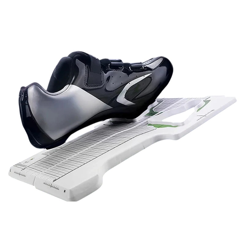 Tento nástroj pro seřízení KEO zarážek je určen pro přesné nastavení polohy a natočení zarážek na cyklistických tretrách. Pomáhá sladit nastavení levé i pravé boty tak, aby odpovídalo přirozenému postavení chodidel při šlapání. Díky přehledné kalibrační mřížce lze jednoduše kontrolovat symetrii i přesnost nastavení. Využití je vhodné pro silniční cyklistiku s KEO systémem. Konstrukce umožňuje rychlé a opakovatelné nastavení bez složitého měření.