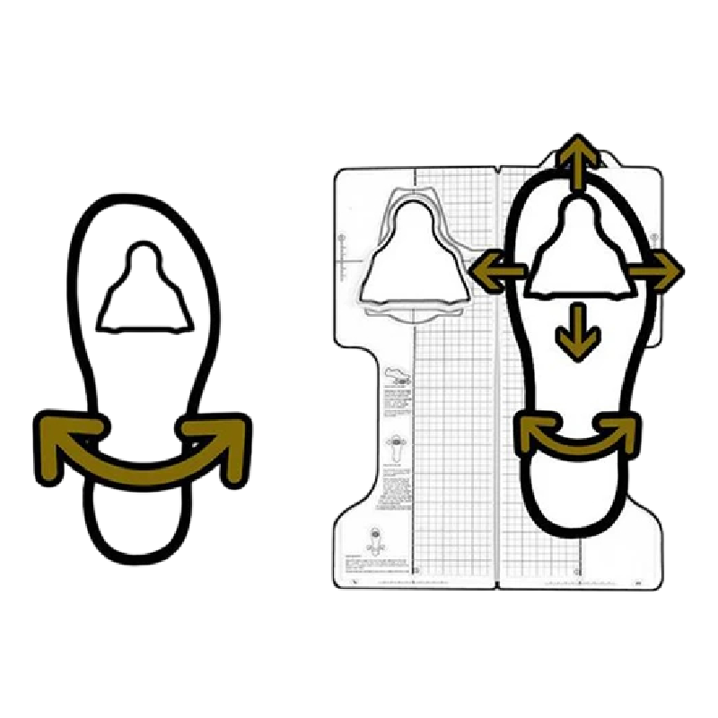 Nástroj umožňuje přesně určit nejen pozici zarážek, ale také jejich úhel natočení. To je důležité pro správný přenos síly při šlapání i stabilitu chodidla v pedálu. Kalibrační linie usnadňují orientaci a zajišťují, že obě tretry budou nastaveny shodně. Díky tomu lze snadno upravit nastavení i při opakované montáži.