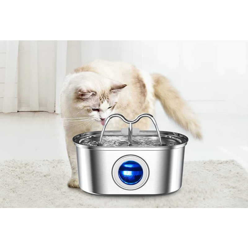 Moderní nerezová fontána pro kočky s objemem 3,2 l zaručuje, že vaše kočka bude mít vždy přístup k čerstvé a čisté vodě. Díky nepřetržité cirkulaci vody zabraňuje tvorbě bakterií a podporuje zdravé pitné návyky. Vestavěné LED světlo umožňuje snadno sledovat hladinu vody, a zároveň dodává zařízení elegantní vzhled. Fontána je navržena tak, aby byla tichá, úsporná a snadno udržovatelná, což z ní dělá ideální doplněk do každé domácnosti se zvířaty.