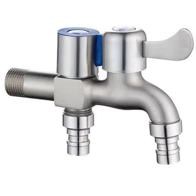 Tato nerezová ocelová vodovodní baterie s dvojitým vývodem a ovládáním představuje univerzální řešení pro každou moderní koupelnu. Díky dvěma výstupům vody umožňuje připojení více zařízení, například sprchy, bidetu nebo pračky. Je vyrobena z kvalitní nerezové oceli, která zaručuje dlouhou životnost, odolnost proti korozi a vysokou pevnost. Kompatibilita se závitem G1/2 (1/2") zajišťuje snadnou instalaci do většiny standardních vodovodních systémů.
