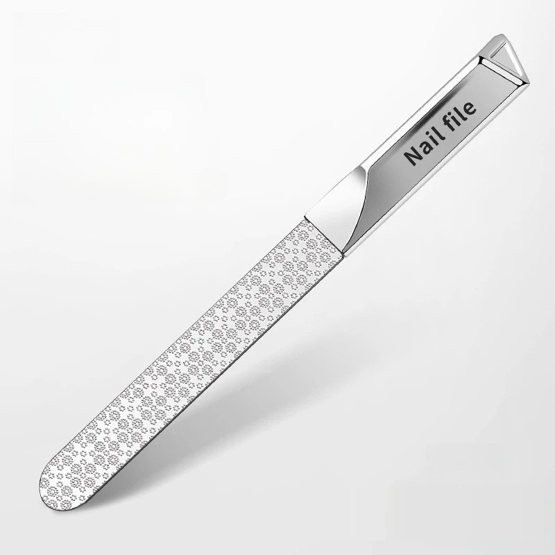 Odolný oboustranný pilník z nerezové oceli pro přesnou úpravu a tvarování nehtů, vhodný pro domácí i profesionální použití. Celý popis