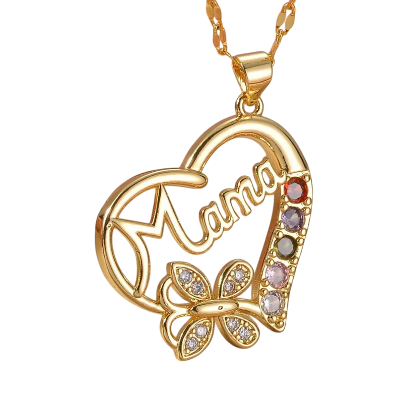 Úvodní strana Úvodní strana Šperky a Hodinky Dámské Dámské náhrdelníky a řetízky Nerezový řetízek s přívěskem srdce Zlatá barva S nápisem Mama a motýlem Elegantní dárek pro maminku Kvalitní šperk