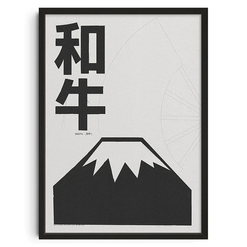 Plakát s motivem japonské hory a znaky v černobílém stylu. Jednoduchá nástěnná dekorace na plátně vhodná do moderního interiéru. Celý popis