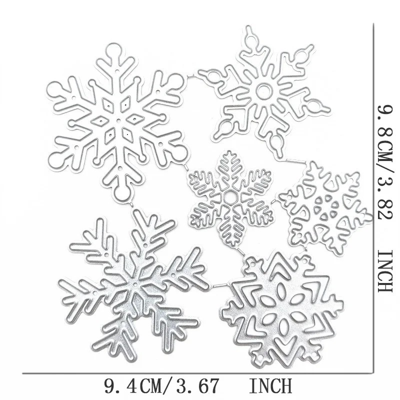 Celkové rozměry šablony jsou 9,8 x 9,4 cm, což poskytuje dostatečný prostor pro více motivů v jednom kusu. Tento formát je vhodný pro přání, papírové dekorace i další kreativní projekty, kde je potřeba jemný zimní prvek.