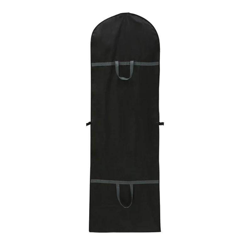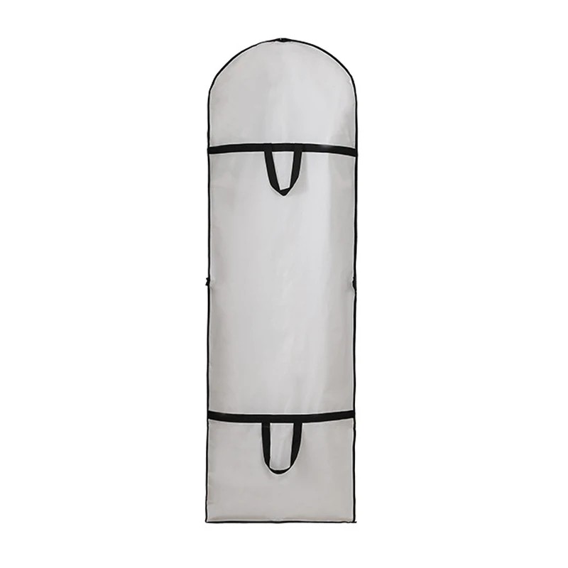 Součástí obalu jsou také pevná madla, která umožňují snadné přenášení nebo přeložení obalu pro úsporu místa. Obal lze složit do kompaktního tvaru pomocí integrovaných popruhů, jak ukazují přiložené fotografie. Konstrukce je navržena tak, aby oděvy zůstaly chráněné, rovné a bez pomačkání. Díky voděodolnému povrchu se hodí pro dlouhodobé skladování oděvů doma i při cestování.