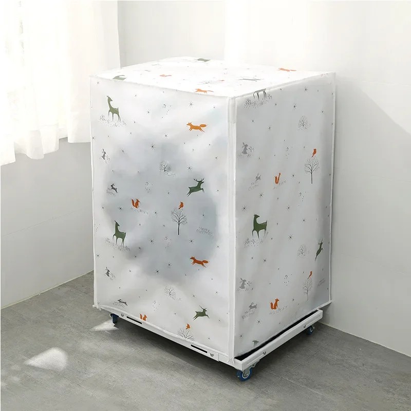 Ochranný potah na pračku 62 x 55 x 86 cm Lesní zvířátka Bílo-průhledný obal na zip pro předem plněnou pračku