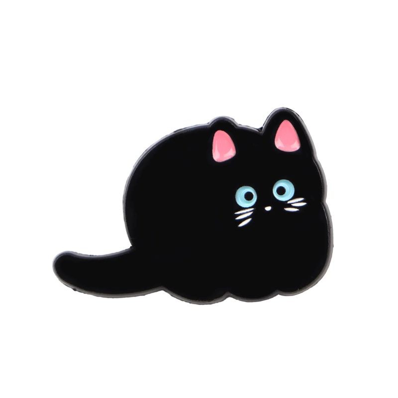 Tento odznak zachycuje stylizovanou černou kočku v jednoduchém a kompaktním provedení. Kočka má kulatý tvar těla, malé uši s růžovým vnitřkem a výrazné modré oči, které tvoří hlavní vizuální prvek celého motivu. Díky minimalistickému zpracování je design přehledný a snadno rozpoznatelný.