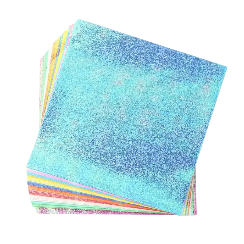 Třpytivý papír na origami ve větším formátu pro skládání a kreativní projekty. Vhodný pro dekorace, přání i scrapbooking. Celý popis