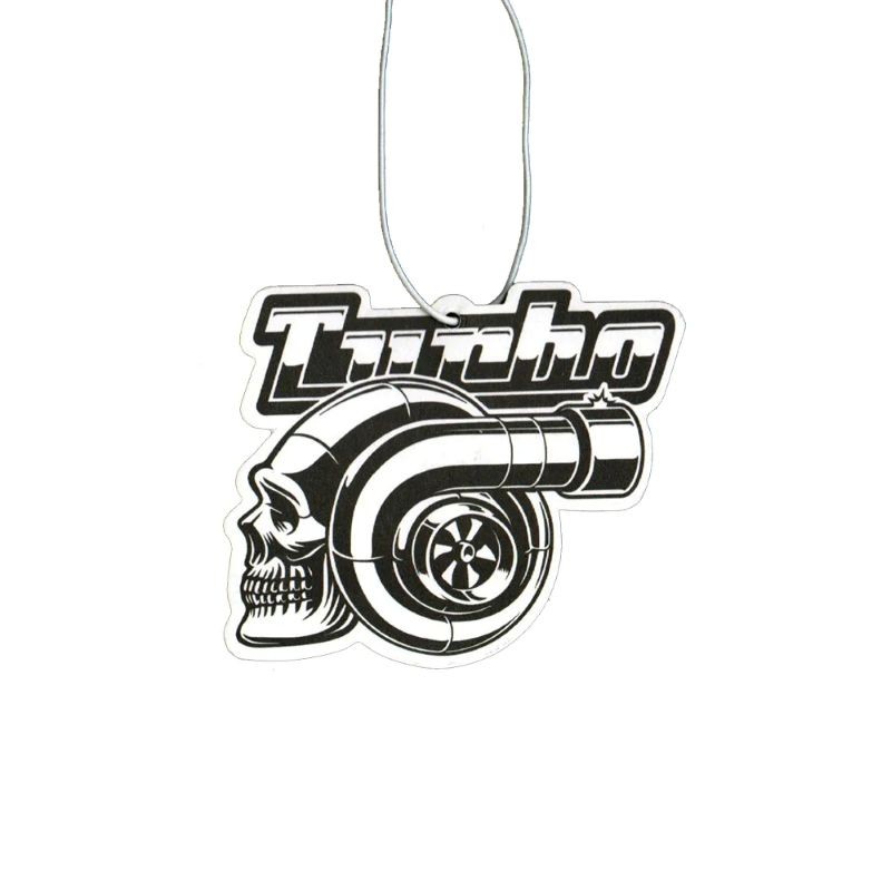 Design přívěsku je tvořen kontrastní černobílou grafikou, která kombinuje motiv lebky a turbodmychadla. Lebka je umístěna na jedné straně a plynule navazuje na stylizované turbo s výraznými detaily. Nad motivem je nápis „Turbo“, který doplňuje celkový vzhled a podtrhuje automobilové zaměření tohoto doplňku.