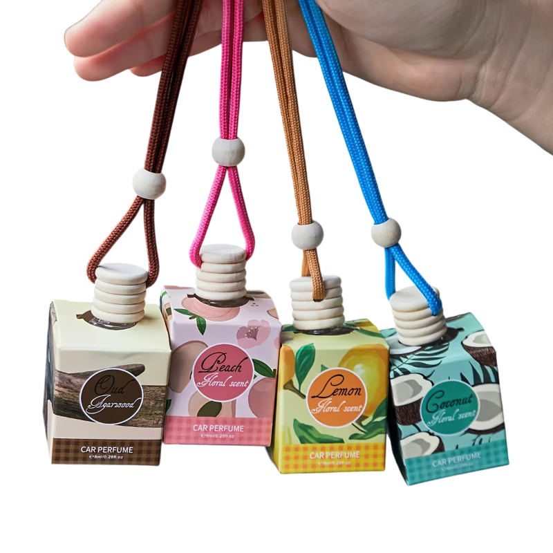 Osvěžovač vzduchu do auta závěsný aromaterapeutický s esenciálními oleji 8 ml mini lahvička 4,7 × 3,9 cm pro interiér vozu