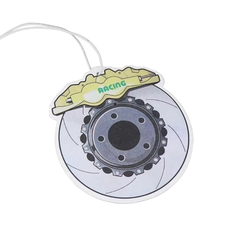 Osvěžovač vzduchu do auta závěsný na zpětné zrcátko motiv brzdového kotouče 8,5 × 9,3 cm pevné provedení šedo žlutý doplněk interiéru