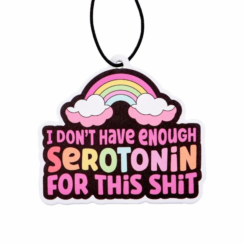 Osvěžovač vzduchu do auta závěsný s citací „I don’t have enough serotonin for this shit“ 7 × 6,2 cm barevný motiv duhy dekorace
