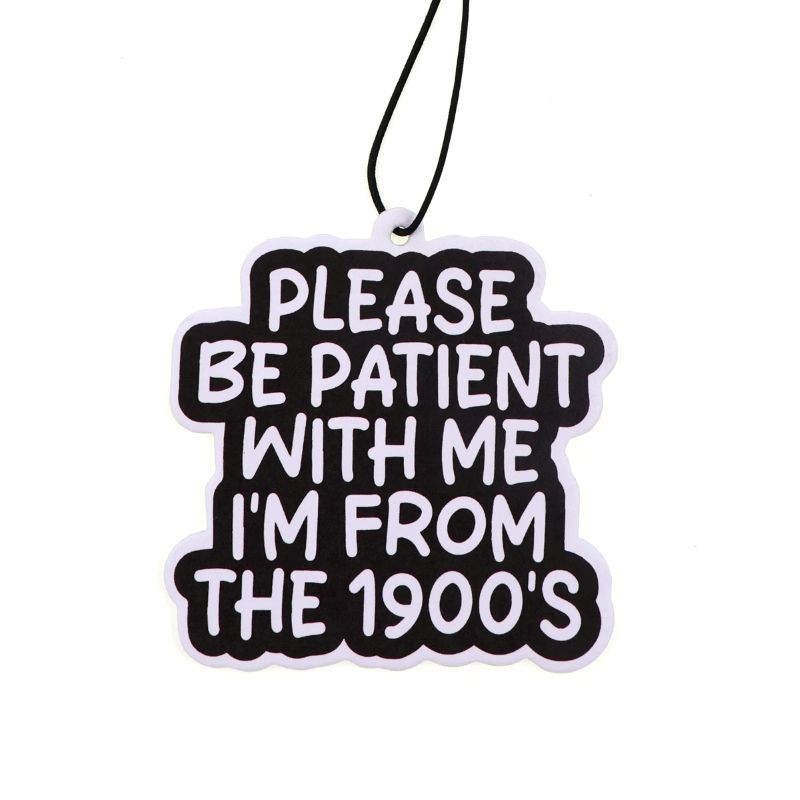 Osvěžovač vzduchu do auta závěsný s citací „Please Be Patient With Me I’m From The 1900’s“ černý doplněk interiéru vozu