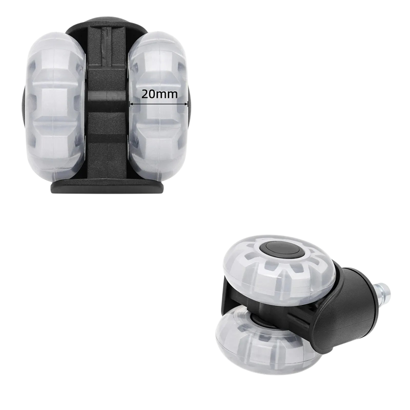 Tato náhradní otočná kolečka jsou určena pro kancelářské židle a další typy sedacího nábytku, které používají čepové uchycení. Konstrukce kombinuje ocel a gumu, což zajišťuje dobrou odolnost a plynulý pohyb při každodenním používání. Kolečka mají průměr 50 mm, díky čemuž se snadno odvalují po různých typech povrchů. Instalace probíhá jednoduchým zasunutím do otvoru pro čep, bez nutnosti složitých úprav. Běhoun je zhotoven z gumového materiálu, který přispívá k tichému chodu a menšímu zatížení podlahy.