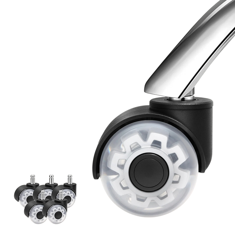 Díky standardním rozměrům čepu jsou tato kolečka vhodná jako přímá náhrada u mnoha typů kancelářských židlí. Kombinace kovových a gumových prvků zajišťuje spolehlivost i při každodenním používání. Gumový běhoun pomáhá chránit podlahu před poškrábáním a snižuje hlučnost při přesunu židle. Instalace je rychlá a zvládne ji každý uživatel bez odborné pomoci. Sada pěti kusů umožňuje kompletní výměnu všech koleček na jedné židli.