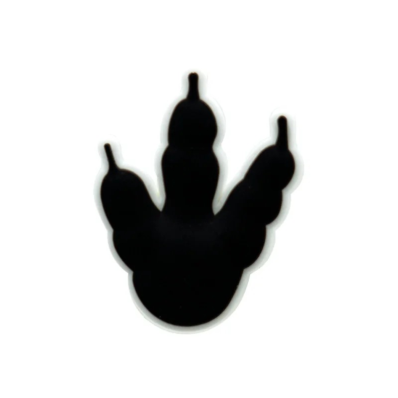 Ozdoba na crocsy dinosauří stopa 2–3 cm PVC černá dekorace do bot crocs s jednoduchým upevněním pro děti i dospělé