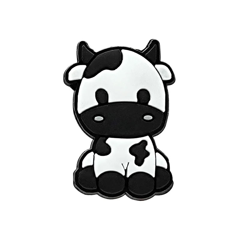 Dekorace na crocsy s motivem krávy je praktickým doplňkem, který jednoduše oživí vzhled obuvi. Tento drobný prvek přidává botám osobitý styl a zaujme svým zvířecím motivem. Černo bílá kráva působí díky kontrastním barvám výrazně a dobře vynikne na různých typech crocs.