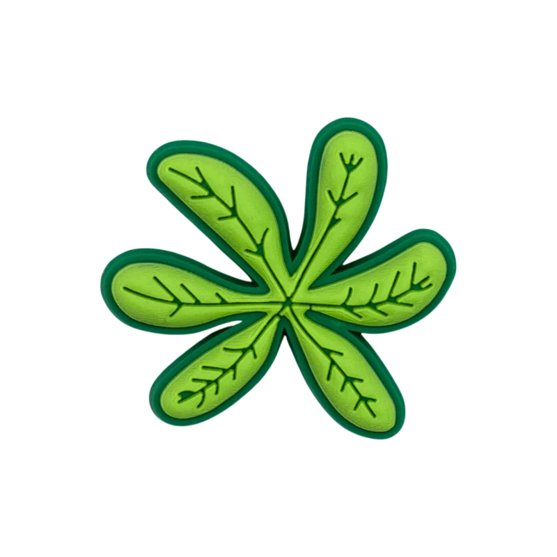 Barevné provedení v zelené barvě odpovídá přirozenému vzhledu listu. Kontrastní obrys a detaily žilek pomáhají motivu vyniknout na různých typech obuvi. Zelený rostlinný motiv se snadno kombinuje s různými barvami crocs a přináší svěží vizuální prvek. Dekorace zároveň zůstává kompaktní a nepřekáží při chůzi.