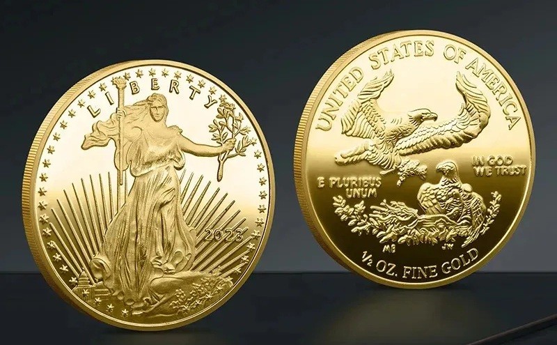Pamětní zlatá mince Socha svobody 4 cm nový klasický postmoderní styl trojrozměrný 3D reliéf sběratelská mince