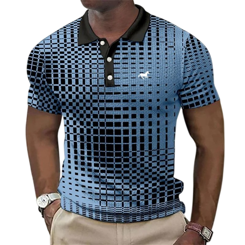 Tato pánská polokošile je navržena pro muže, kteří hledají kombinaci upraveného vzhledu a každodenního komfortu. Klasický límeček s knoflíky dodává tričku elegantní charakter, zatímco krátký rukáv zajišťuje pohodlí při celodenním nošení. Jednoduché vzorování je doplněno o potisk koně na hrudi, který dodává polokošili osobitý styl. Polyesterový materiál je lehký, příjemný na dotek a vhodný pro běžné denní aktivity. Díky univerzálnímu designu se polokošile snadno kombinuje s různými typy kalhot i obuvi.