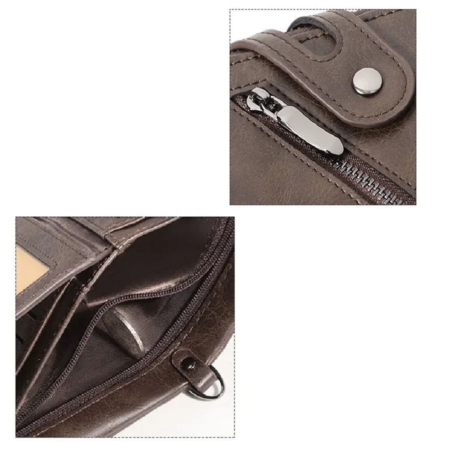 Pánská rozkládací peněženka s RFID 12 x 10 x 3 cm Řetízek Kapsy na zip Umělá kůže Bezpečná ochrana karet