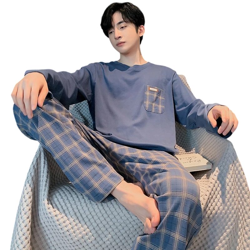 Úvodní strana Úvodní strana Oblečení a doplňky Pánské Pánská pyžama Pánské pyžamo dlouhý rukáv a kostkované kalhoty O výstřih Polyester Spandex Modré pohodlné pyžamo s kapsičkou