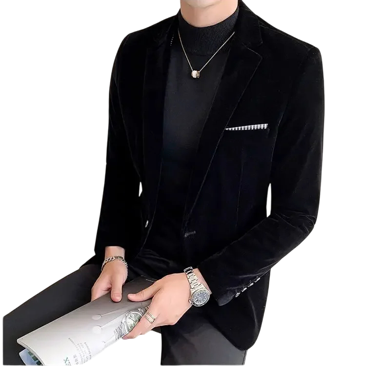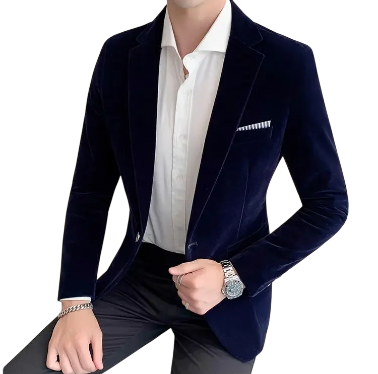 • Design: klasický střih s klopami, zapínání na jeden knoflík, elegantní kapsička na prsou.