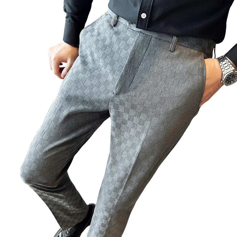 - Elegantní pánské společenské kalhoty s jemným vzorem kostiček pro moderní vzhled