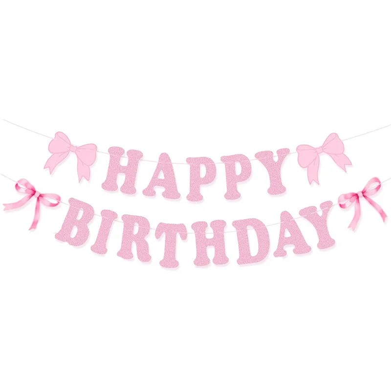 Papírová girlanda Happy Birthday s mašlemi 2 m Papírová narozeninová dekorace růžová závěsná párty výzdoba na stěnu pro oslavu narozenin