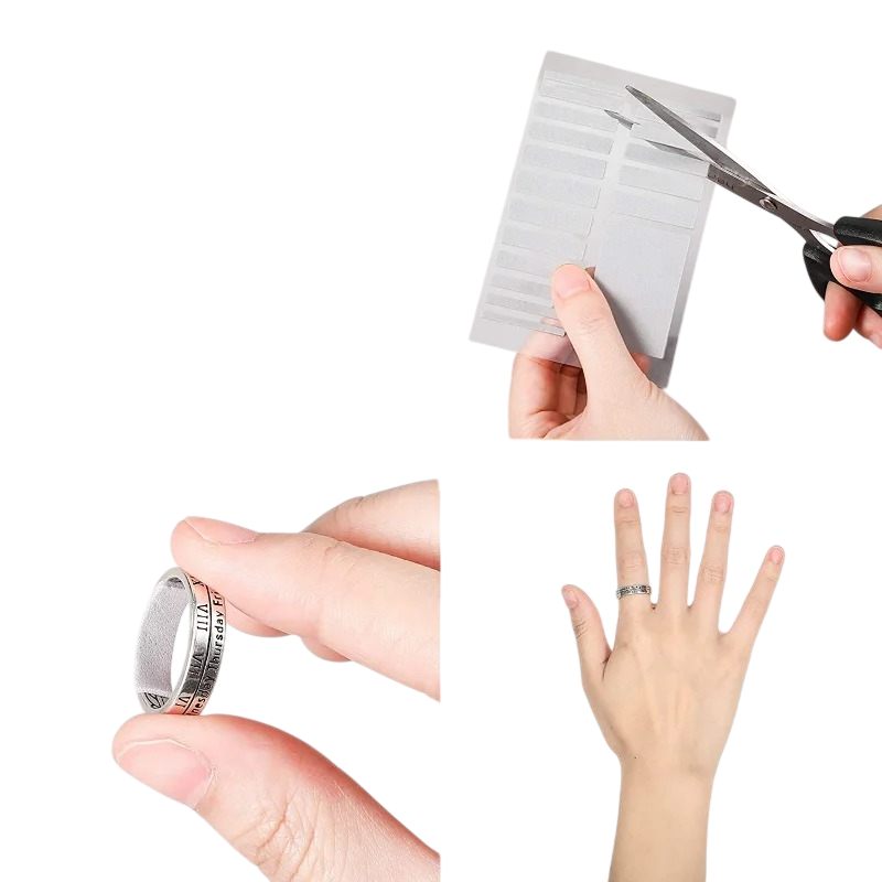 Tento produkt je navržen tak, aby byl co nejméně viditelný při běžném nošení. Diskrétní provedení umožňuje zachovat původní vzhled prstenu, aniž by byl narušen jeho design. Páska se připevňuje na vnitřní stranu prstenu, kde zůstává skrytá a zároveň účinně plní svou funkci.