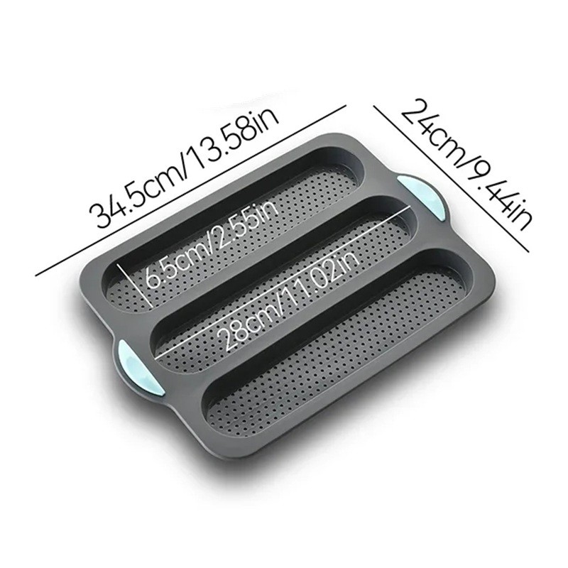 Tento pečicí plech je vhodný pro každodenní použití při přípravě domácího pečiva. Otvory na povrchu pomáhají odvádět vlhkost, což podporuje vytvoření křupavé kůrky. Forma má tři samostatné drážky, které udržují tvar baget během pečení.