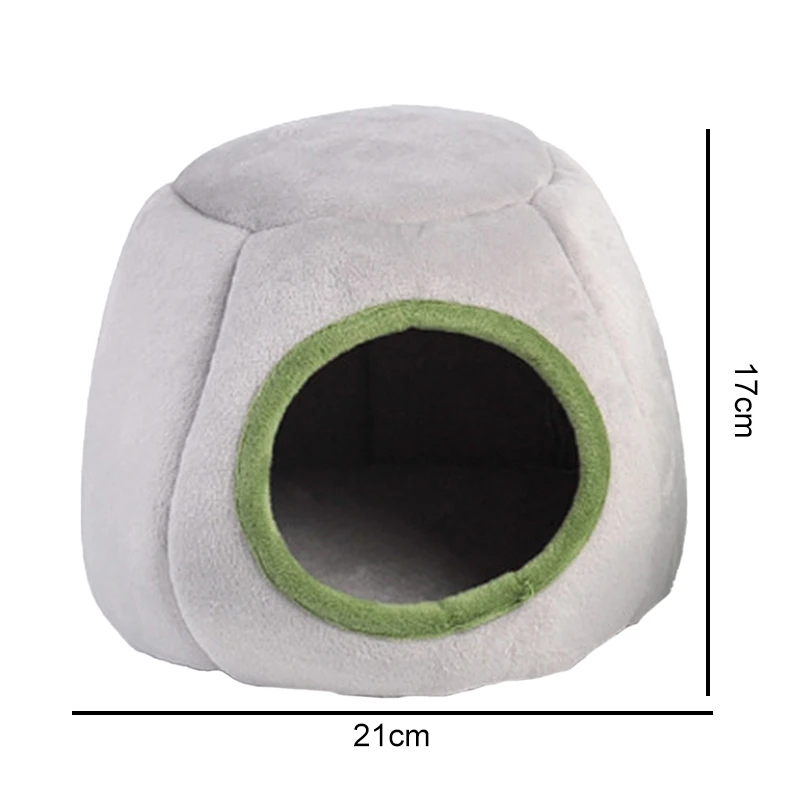 Pelíšek pro hlodavce 21 x 17 cm Šedý teplý domeček z plyšové látky a houby Měkké hnízdo pro křečky, morčata a malé hlodavce