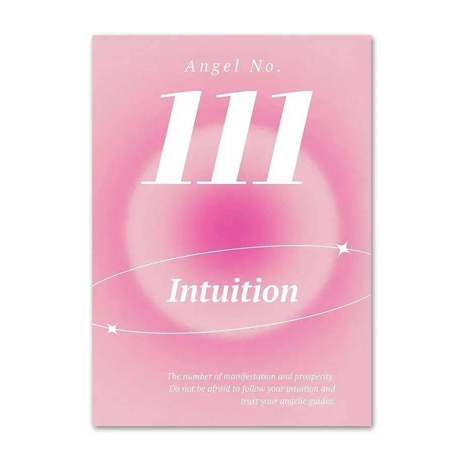 Plakát s motivem andělského čísla 111 a nápisem Intuition v růžovém provedení, rozměr 20 × 30 cm na plátně pro dekoraci stěny. Celý popis