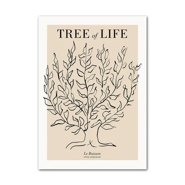 Barevné provedení v kombinaci černé a béžové podtrhuje jednoduchost a umožňuje snadné sladění s různými styly interiéru. Motiv stromu života působí nadčasově a nenarušuje celkový charakter místnosti. Plakát je dodáván jako měkký plakát bez rámu, což poskytuje možnost přizpůsobit způsob instalace podle vlastních preferencí.