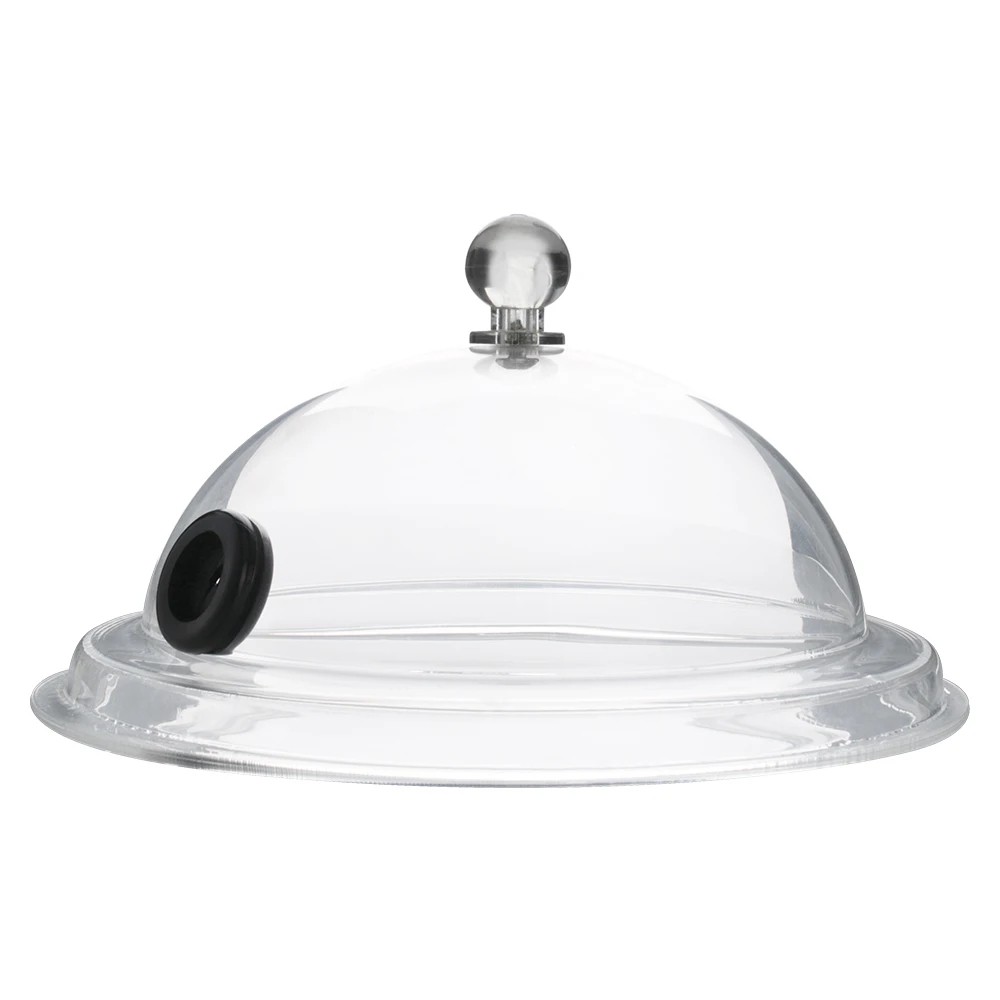 Plastová nádoba s poklopem a otvorem na kouř 16 cm transparentní dóza pro servírování pokrmů a kouřové efekty