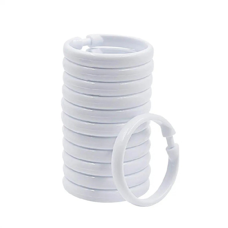 Plastové háčky na sprchový závěs otevírací sada 12 ks 6 x 6 cm plastové kroužky pro zavěšení sprchového závěsu do koupelny