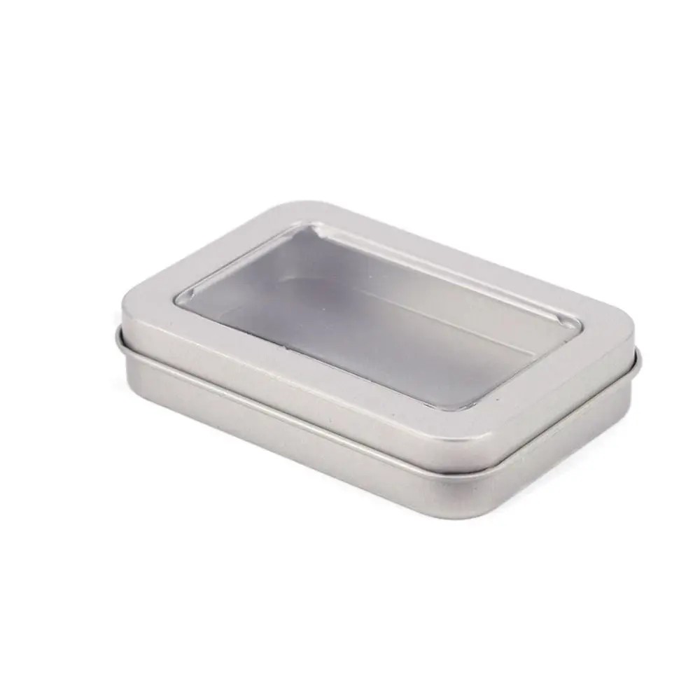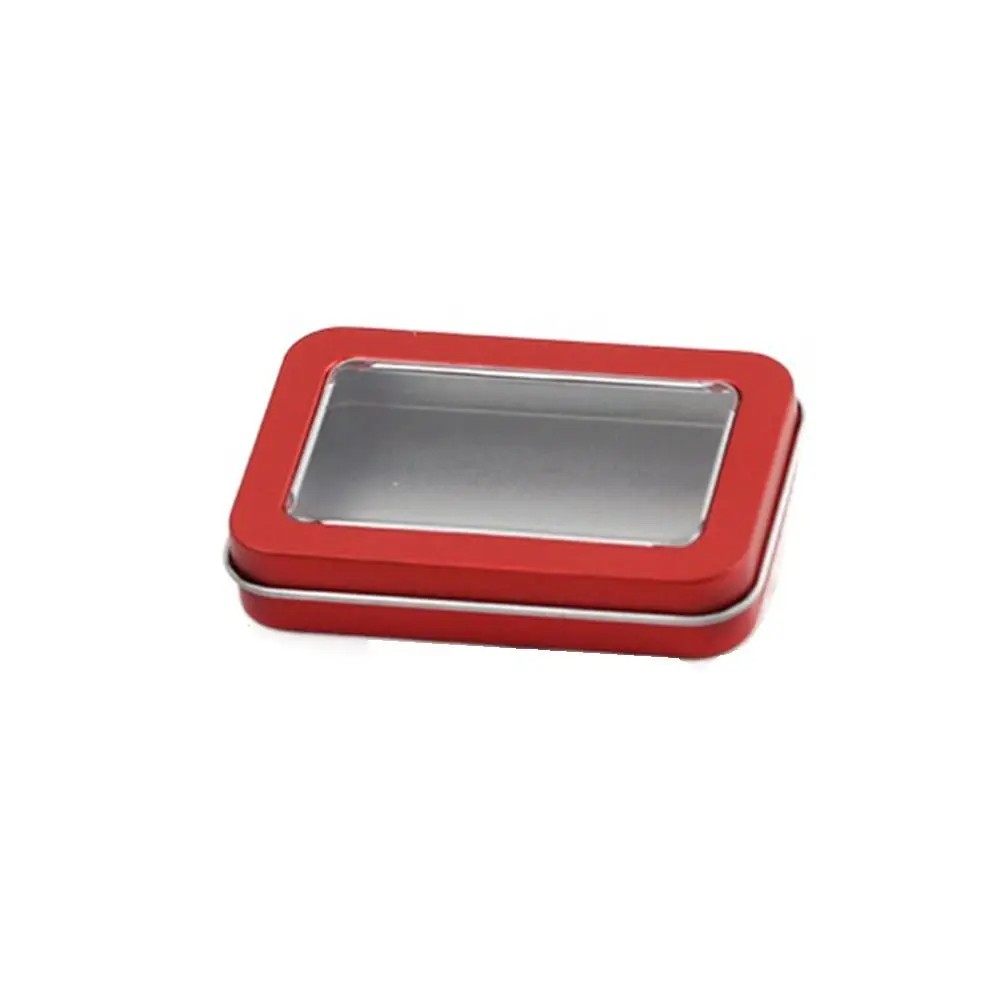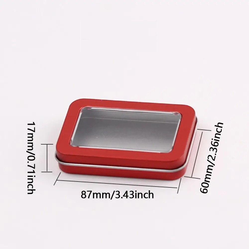 Plechová dárková krabička 8,7 × 6 × 1,7 cm kovová dóza s průhledným okýnkem barevná krabička na drobnosti čaj kávu balení