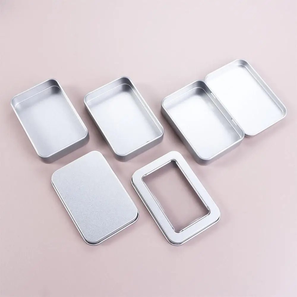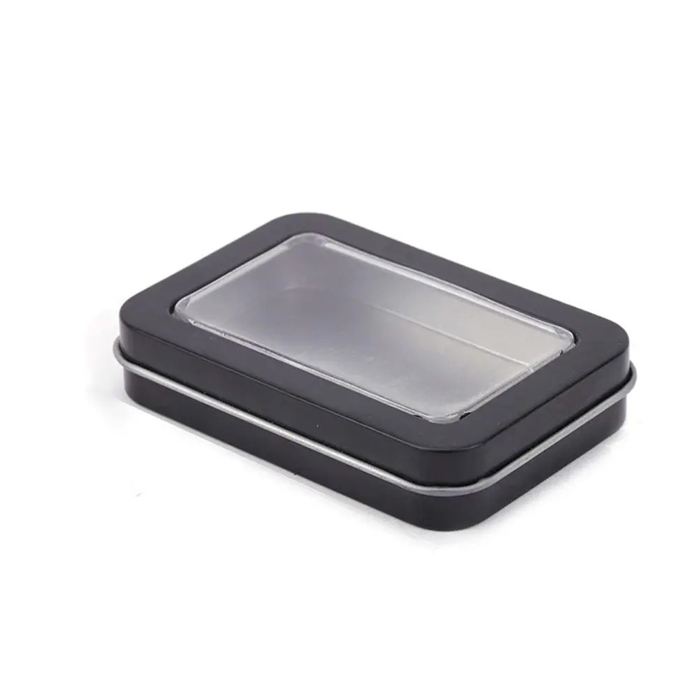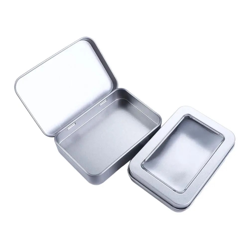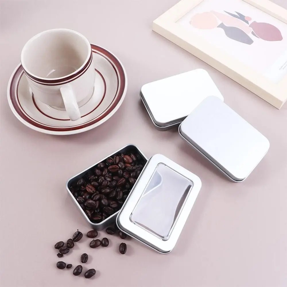 Plechová dárková krabička 8,7 × 6 × 1,7 cm kovová dóza s průhledným okýnkem barevná krabička na drobnosti čaj kávu balení