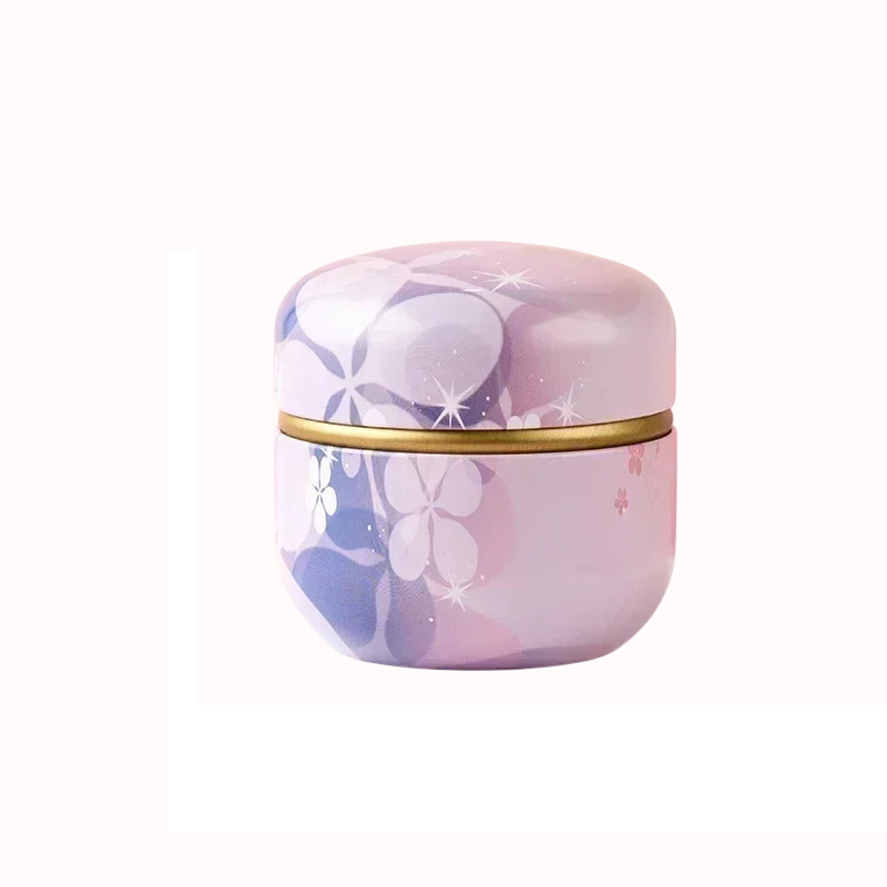 Mezi horní a spodní částí se nachází výrazný prstenec ve zlaté barvě, který opticky odděluje jednotlivé části krabičky. Tento prvek dodává produktu kontrast a zvýrazňuje jeho konstrukci. Tvar krabičky je zaoblený, bez ostrých hran, což působí kompaktně a příjemně na pohled. Horní víko má mírně klenutý tvar, který navazuje na celkovou siluetu dózy.