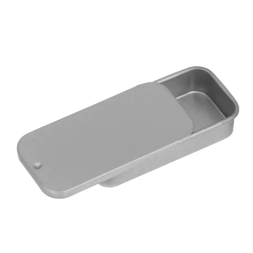 Plechová krabička na šperky a drobnosti 50 × 25 × 10 mm kovová šedá dóza s posuvným víkem balení na léky bonbony