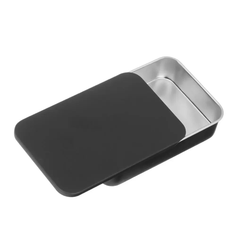 Plechová krabička na šperky a drobnosti 90 × 60 × 20 mm kovová dóza s posuvným víkem balení na léky bonbony