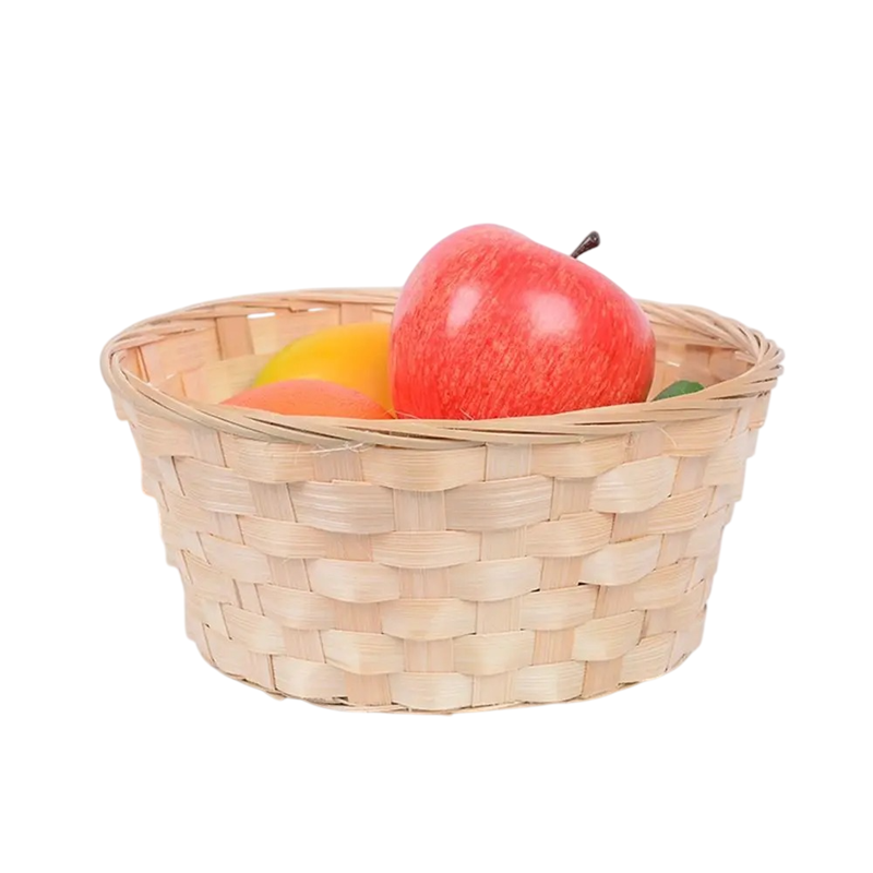 Materiál tvoří bambus, který je lehký a zároveň pevný. Pletené zpracování vytváří stabilní konstrukci, která si zachovává tvar i při běžném používání. Díky vzdušné struktuře je košík vhodný například pro uchování pečiva nebo ovoce. Rozměry 20 × 8 cm poskytují více prostoru než menší varianty a umožňují širší využití.