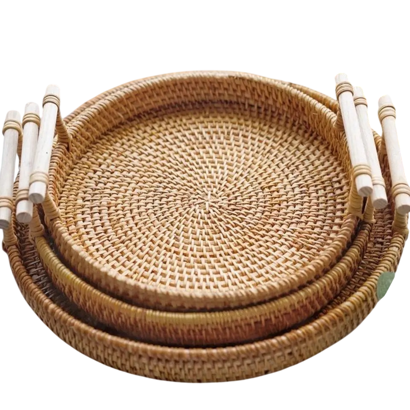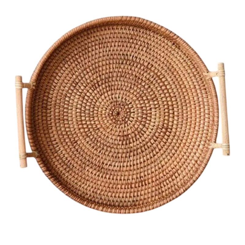 Pletený košík kulatý s držadly 28 cm ratan přírodní servírovací podnos na ovoce, pečivo a dekorace do domácnosti