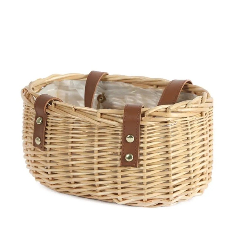 Pletený košík s držáky z pásků vrbový ratan přírodní s podšívkou dekorativní košík na květiny, piknik a ukládání