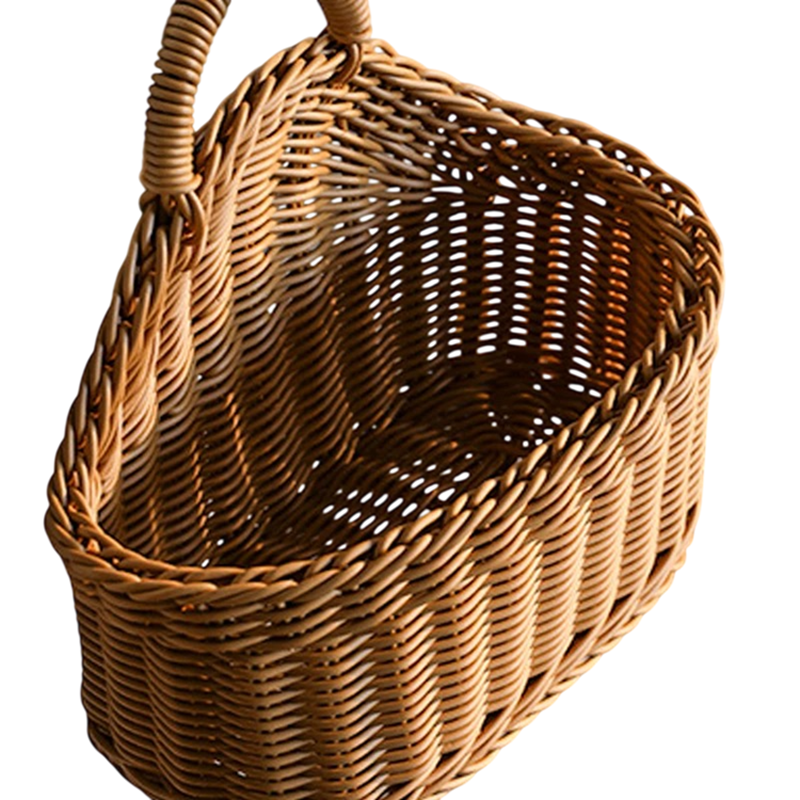 Prostorný plastový košík v imitaci ratanu s uchem vhodný na drobnosti i dekorace. Praktický doplněk pro organizaci domácnosti. Celý popis