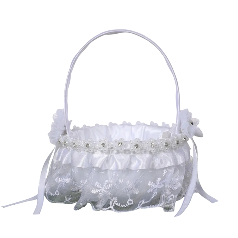 Bílý ratanový košík s krajkou a podšívkou vhodný na květiny i dekorace. Elegantní doplněk pro interiér i slavnostní aranžování. Celý popis