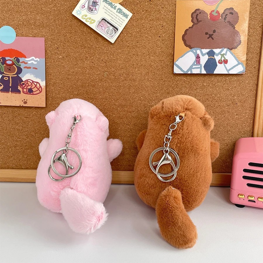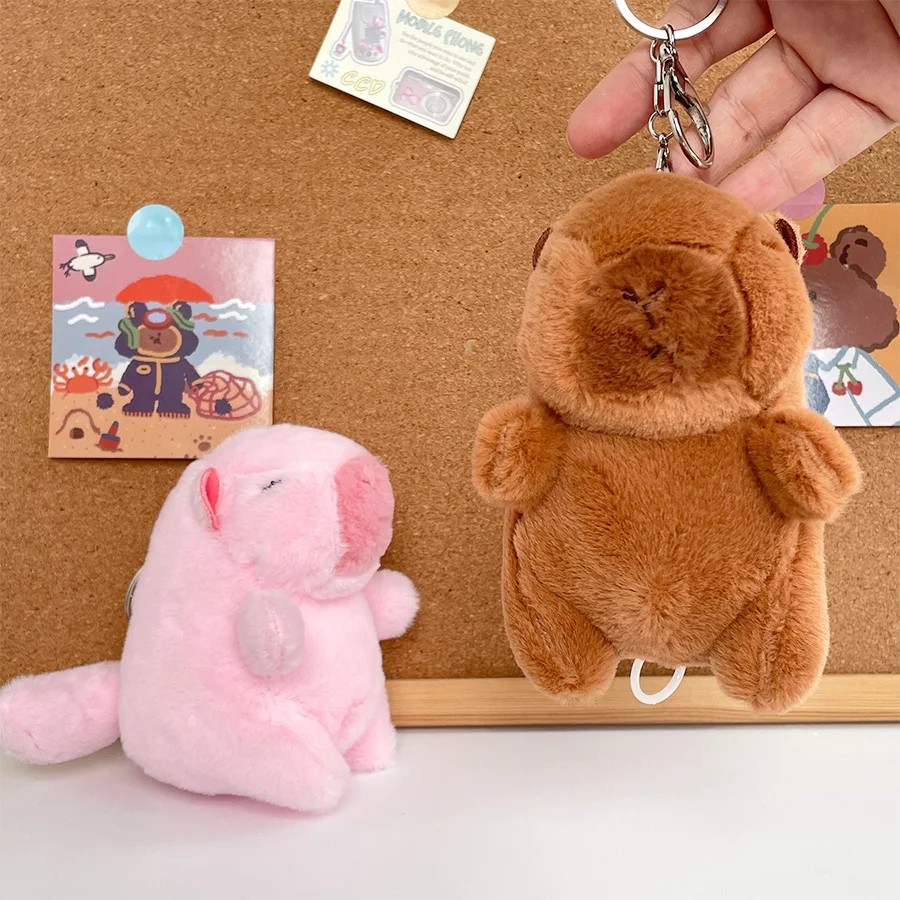 Plyšová kapibara klíčenka s pohyblivým ocáskem Roztomilý měkký přívěsek na klíče nebo batoh Dekorace pro milovníky zvířat