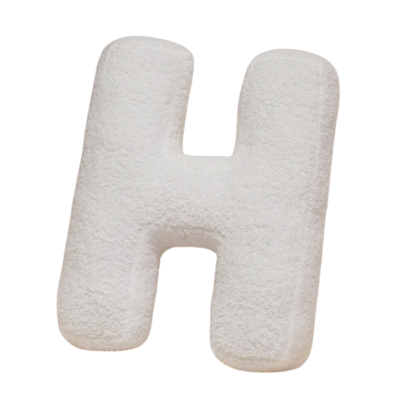 Plyšový polštář ve tvaru písmene H je jednoduchým a zároveň výrazným doplňkem, který se snadno začlení do různých typů interiérů. Díky svému tvaru působí vyváženě a hodí se jako dekorace na postel, gauč nebo křeslo. Lze jej využít samostatně i v kombinaci s dalšími písmeny pro vytvoření zajímavé kompozice.
