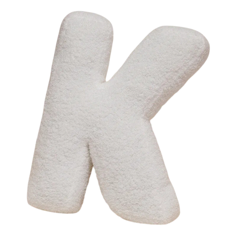 Plyšový polštář ve tvaru písmene K o velikosti 40 cm. Měkký dekorační doplněk s výplní z PP bavlny vhodný na postel, gauč i do interiéru. Celý popis